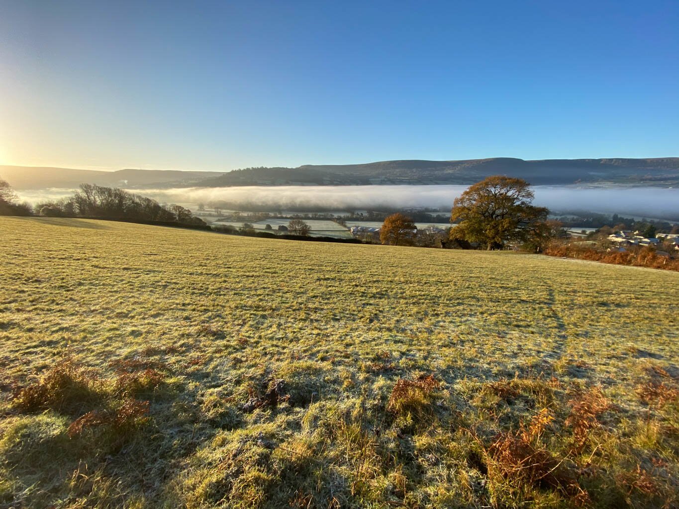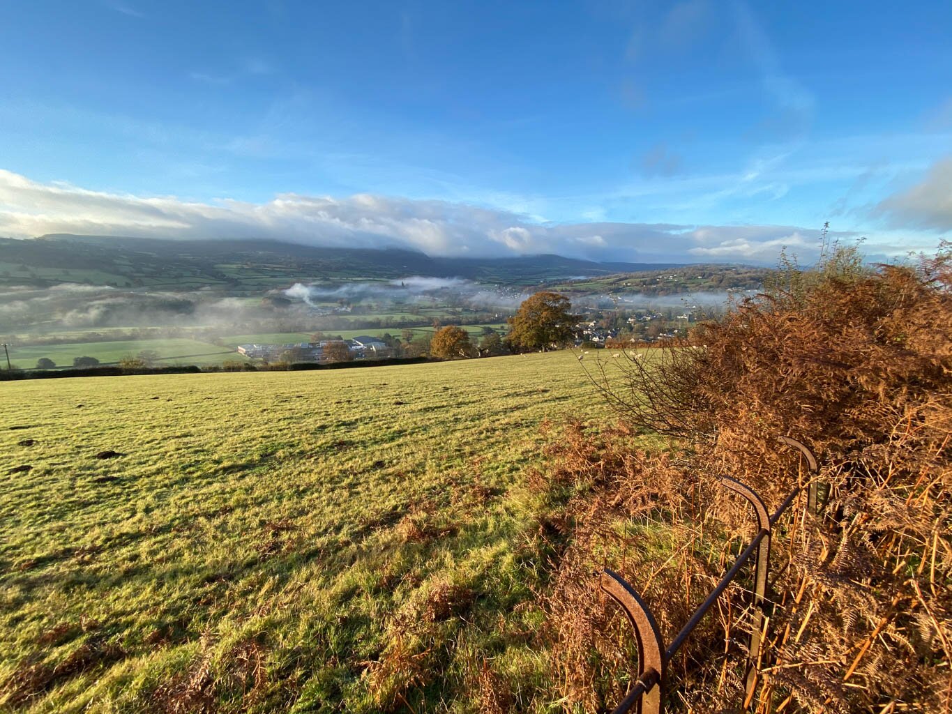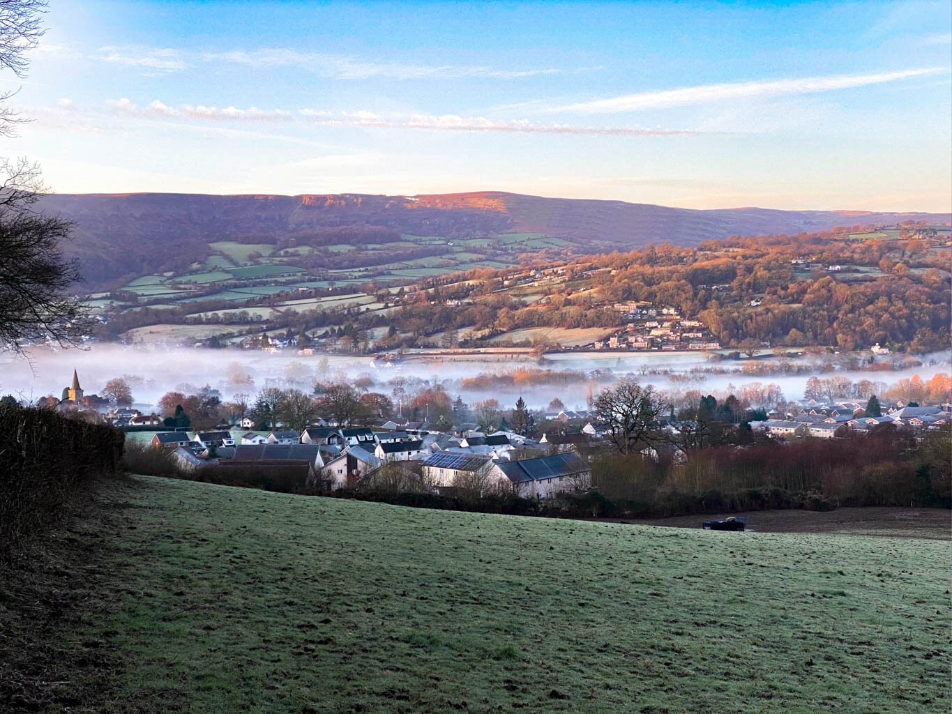 Looking down to Crickhowell from the Canal. The river Usk in flood looking down from Bluebell woods. Looking south east toward Sugar Loaf mountain in the distance. Looking down over the town from Bellfountain Road. Castle Park in the town centre. The Dragons breath over the town. The Dragons breath over the River Usk. The Dragons breath looking towards Gilwern. View down to the river Usk from Bluebell woods. Looking out from the Bluebell woods over the Glanusk Estate. Sugerloaf mountain in the evening. From Castle Park looking towards Table Mountain. Sugerloaf Mountain in all its glory. Another splendid view of Sugerloaf Mountain. The countryside at the top of Bellfountain Road. A winter morning on Bellfountain Road. A winter morning on Bellfountain Road.